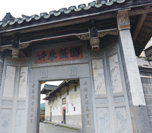 福裕楼外大门对联:安堵岂云高百尺,爱庐惟幸辟三弓。