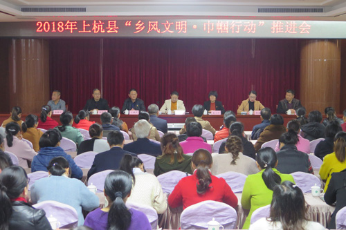 为做好乡村振兴战略巾帼行动,有效促进乡风文明,12月18日上午,上杭县妇联、县文明办、县直机关党工委和非公党工委在上杭大酒店三楼会议室召开中国妇女十二大和龙岩市妇女五大会议精神宣讲报告会暨2018年上杭县“乡风文明·巾帼行动”推进会。龙岩市妇联党组书记、主席蓝凯英,上杭县政府副县长蓝玉华,县委宣传部副部长丘晓武、县文明办主任科员邱发锦、县委组织部正科级组织员徐丰盛、县直机关党工委专职委员凌德兴出席活动。