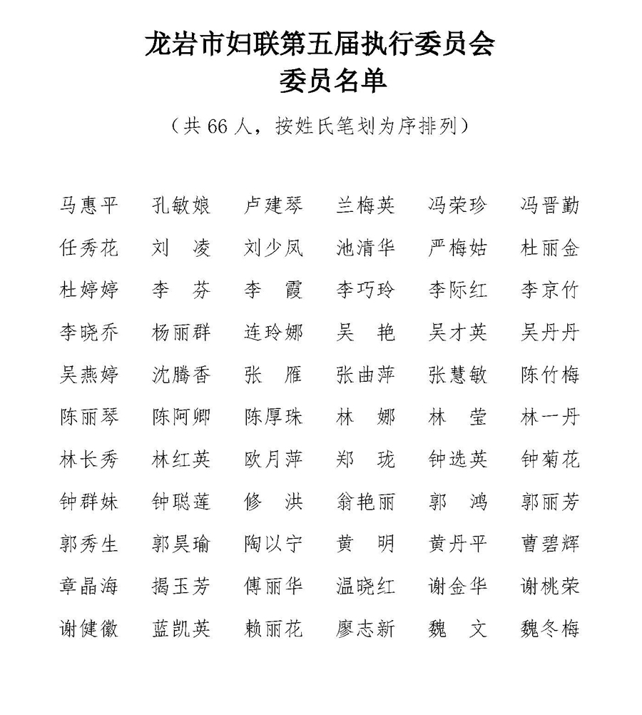 66人当选龙岩市妇联第五届执行委员会委员